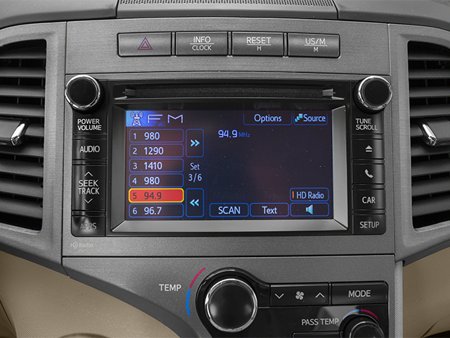 This 2013 Classic Silver Metallic Toyota Venza LE FWD is well equipped and includes these features and benefits: 19 x 7.5J Aluminum Alloy Wheels, 4-Wheel Disc Brakes, 4.356 Axle Ratio, 6 Speakers, ABS brakes, Air Conditioning, Alloy wheels, AM/FM radio, Anti-whiplash front head restraints, Auto-dimming Rear-View mirror, Automatic temperature control, Back-Up Camera, Brake assist, Bumpers: body-color, CD player, Cloth Seat Trim, Compass, Delay-off headlights, Driver door bin, Driver vanity mirror, Dual front impact airbags, Dual front side impact airbags, Electronic Stability Control, Four wheel independent suspension, Front anti-roll bar, Front Bucket Seats, Front Center Armrest, Front dual zone A/C, Front fog lights, Front reading lights, Fully automatic headlights, Garage door transmitter: HomeLink, Heated door mirrors, Illuminated entry, Knee airbag, Low tire pressure warning, Occupant sensing airbag, Outside temperature display, Overhead airbag, Overhead console, Panic alarm, Passenger door bin, Passenger vanity mirror, Power door mirrors, Power driver seat, Power Lift-Gate w/Jam Protection, Power steering, Power windows, Radio: AM/FM CD Player/MP3/WMA Capability, Radio: Display Audio w/Navigation & Entune, Rear anti-roll bar, Rear reading lights, Rear seat center armrest, Rear window defroster, Rear window wiper, Remote keyless entry, Speed control, Speed-sensing steering, Split folding rear seat, Spoiler, Steering wheel mounted audio controls, Tachometer, Telescoping steering wheel, Tilt steering wheel, Traction control, Trip computer, Turn signal indicator mirrors, and Variably intermittent wipers.