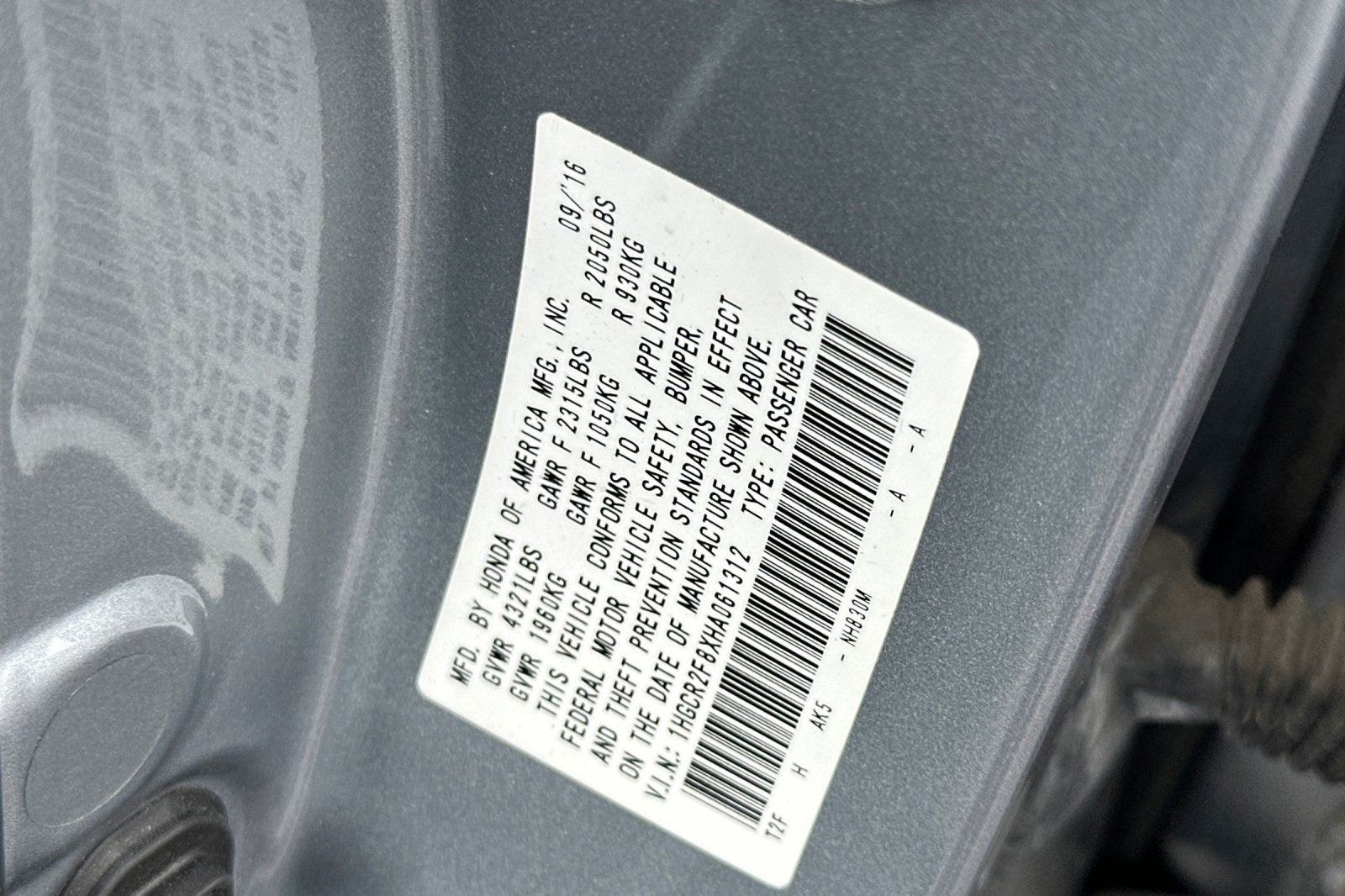 1HGCR2F8XHA061312