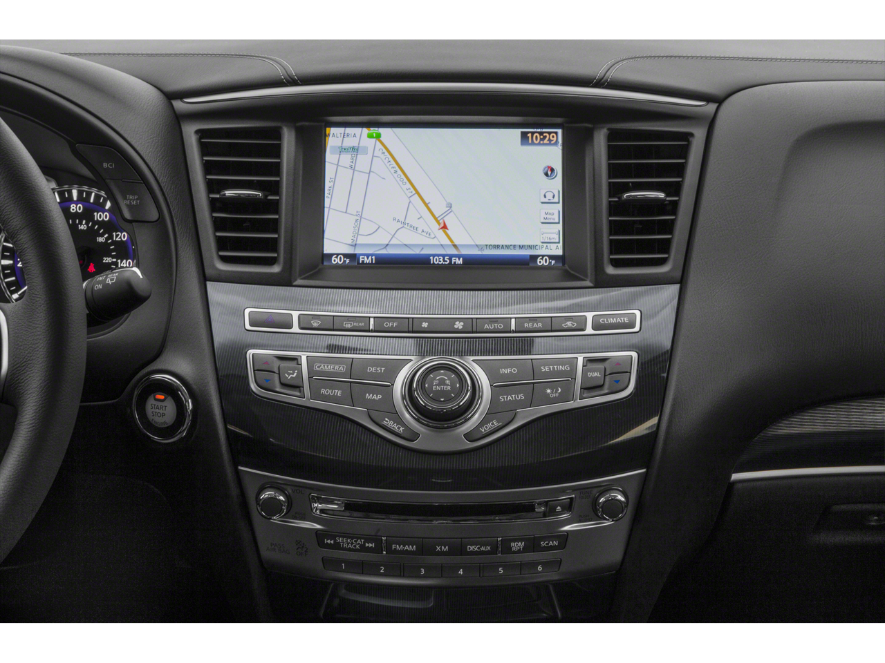 - Radio: AM/FM/CD/MP3 w/Bose Premium Audio System -inc: 13 speakers, Radio Data System (RDS), speed-sensitive volume control, 8" touch screen, illuminated steering wheel-mounted audio controls, INFINITI InTouch system w/HD radio, SiriusXM radio w/3-month complimentary trial, SiriusXM Travel Link w/4-year complimentary trial access to weather, fuel prices, stock prices, sports scores and movie listings, voice recognition for audio, Bluetooth® and vehicle information, Bluetooth® hands-free phone system and audio streaming, hands-free text messaging assistant, 2 USB ports for compatible devices for audio streaming, 6 USB charging ports: 1st and 2nd row, illuminated: 1x type A, 1x type C and 3rd row: 2x type A and auxiliary audio/video input jacks in front center console