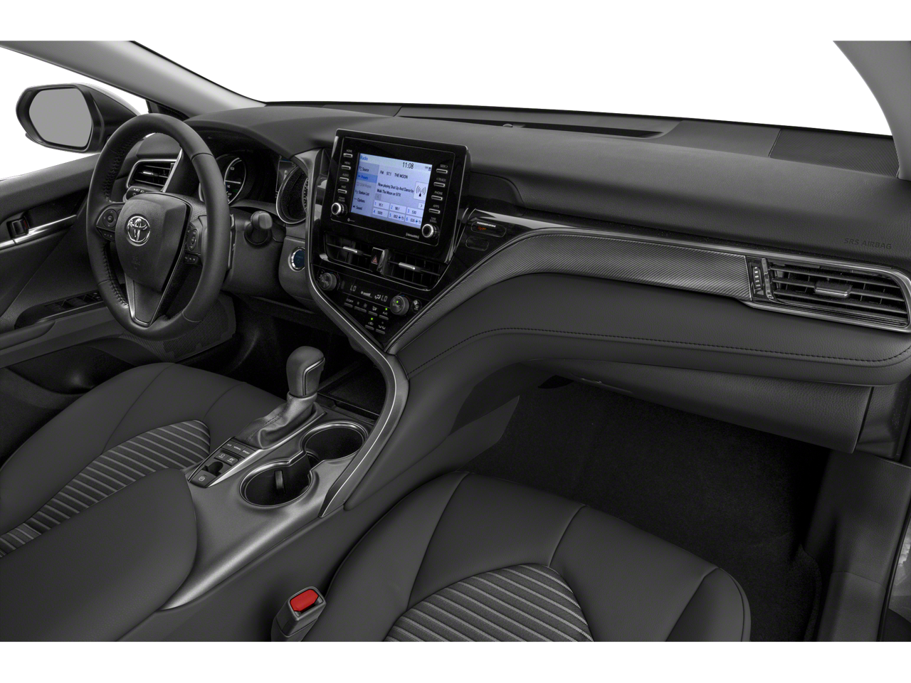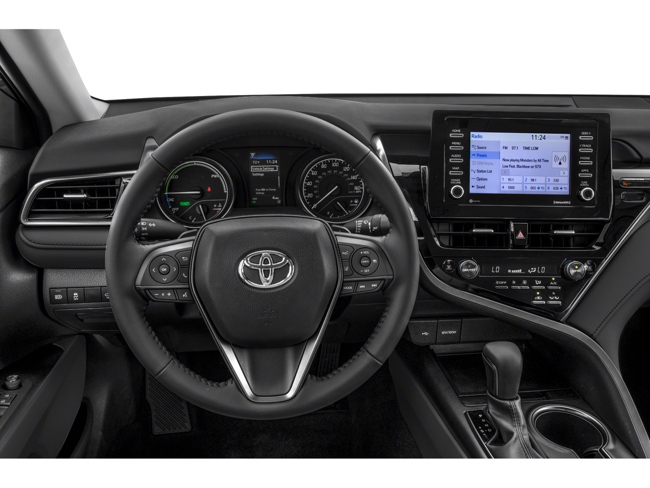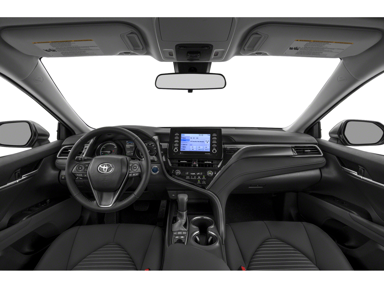 Backup Camera, Bluetooth®, Alloy Wheels, Audio Package, Climate Package, Comfort Package, Heat Package, Leather Seats, Light Package, NON SMOKER, Power Mirror Package, Power Package, Security Package, Sound Package, Camry Hybrid SE, 4D Sedan, 2.5L I4 DOHC 16V, eCVT, FWD, Midnight Black Metallic, Ash w/Perforated Leather Seat Trim, 4-Wheel Disc Brakes, 6 Speakers, ABS brakes, Air Conditioning, Alloy wheels, AM/FM radio: SiriusXM, Apple CarPlay/Android Auto, Auto High-beam Headlights, Automatic temperature control, Brake assist, Bumpers: body-color, Delay-off headlights, Driver door bin, Driver vanity mirror, Dual front impact airbags, Dual front side impact airbags, Electronic Stability Control, Emergency communication system: Safety Connect with 1-year trial, Exterior Parking Camera Rear, Fabric Seat Trim w/Sport SofTex, Four wheel independent suspension, Front anti-roll bar, Front Bucket Seats, Front Center Armrest, Front dual zone A/C, Front reading lights, Fully automatic headlights, Illuminated entry, Knee airbag, Low tire pressure warning, Occupant sensing airbag, Outside temperature display, Overhead airbag, Overhead console, Panic alarm, Passenger door bin, Passenger vanity mirror, Power door mirrors, Power driver seat, Power steering, Power windows, Radio data system, Radio: AM/FM Audio System, Rear anti-roll bar, Rear reading lights, Rear seat center armrest, Rear side impact airbag, Rear window defroster, Remote keyless entry, Security system, Speed control, Speed-sensing steering, Split folding rear seat, Spoiler, Steering wheel mounted audio controls, Telescoping steering wheel, Tilt steering wheel, Traction control, Trip computer, Variably intermittent wipers. Midnight Black Metallic 2021 Toyota Camry Hybrid SE FWD eCVT 2.5L I4 DOHC 16V