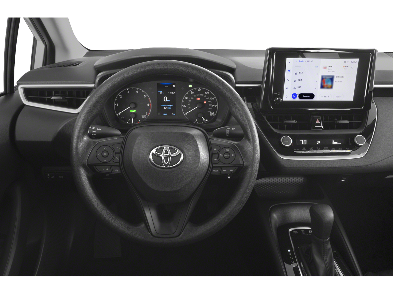This 2023 Ice Cap Toyota Corolla Hybrid LE FWD is well equipped and includes these features and benefits: All Weather Floor Liner Package (TMS), Preferred Accessory Package w/Carpet Mats (TMS), 1.8L DOHC 16V VVT, 4-Wheel Disc Brakes, 6 Speakers, ABS brakes, Air Conditioning, AM/FM radio: SiriusXM, Auto High-beam Headlights, Automatic temperature control, Brake assist, Bumpers: body-color, Delay-off headlights, Driver door bin, Driver vanity mirror, Dual front impact airbags, Dual front side impact airbags, Electronic Stability Control, Emergency communication system: Safety Connect (up to 10-year trial subscription), Exterior Parking Camera Rear, Four wheel independent suspension, Front anti-roll bar, Front Bucket Seats, Front Center Armrest, Front reading lights, Fully automatic headlights, Illuminated entry, Knee airbag, Low tire pressure warning, Occupant sensing airbag, Outside temperature display, Overhead airbag, Panic alarm, Passenger door bin, Passenger vanity mirror, Power door mirrors, Power steering, Power windows, Premium Fabric Seat Trim, Radio data system, Radio: 8 Toyota Audio Multimedia, Rear anti-roll bar, Rear seat center armrest, Rear side impact airbag, Rear window defroster, Remote keyless entry, Speed control, Split folding rear seat, Steering wheel mounted audio controls, Tachometer, Telescoping steering wheel, Tilt steering wheel, Traction control, Trip computer, Variably intermittent wipers, and Wheels: 16 Wide Vent Steel. 1.8L DOHC 16V VVT.