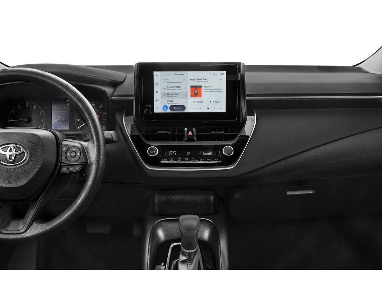 This 2023 Toyota Corolla LE FWD is well equipped and includes these features and benefits: 4-Wheel Disc Brakes, 6 Speakers, ABS brakes, Air Conditioning, AM/FM radio: SiriusXM, Auto High-beam Headlights, Automatic temperature control, Brake assist, Bumpers: body-color, Delay-off headlights, Driver door bin, Driver vanity mirror, Dual front impact airbags, Dual front side impact airbags, Electronic Stability Control, Emergency communication system: Safety Connect (up to 10-year trial subscription), Exterior Parking Camera Rear, Front anti-roll bar, Front Bucket Seats, Front Center Armrest, Front reading lights, Front wheel independent suspension, Fully automatic headlights, Illuminated entry, Knee airbag, Low tire pressure warning, Occupant sensing airbag, Outside temperature display, Overhead airbag, Panic alarm, Passenger door bin, Passenger vanity mirror, Power door mirrors, Power steering, Power windows, Premium Fabric Seat Trim, Radio data system, Radio: 8 Toyota Audio Multimedia, Rear anti-roll bar, Rear seat center armrest, Rear side impact airbag, Rear window defroster, Remote keyless entry, Speed control, Split folding rear seat, Steering wheel mounted audio controls, Tachometer, Telescoping steering wheel, Tilt steering wheel, Traction control, Trip computer, Variably intermittent wipers, and Wheels: 16 Wide Vent Steel.