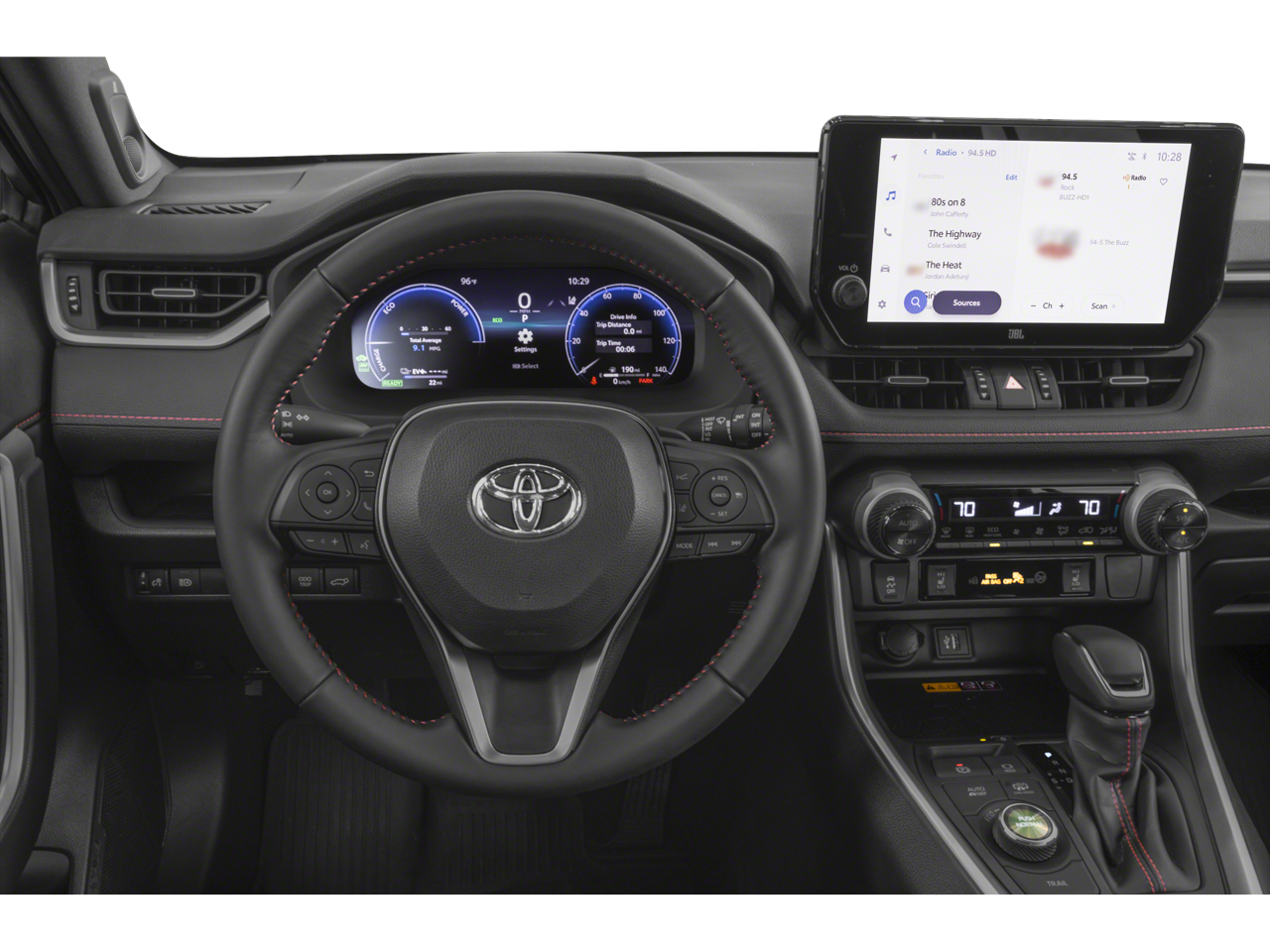 This 2024 Toyota RAV4 Prime XSE AWD is well equipped and includes these features and benefits: 11 Speakers, 19 Alloy Wheels, 4-Wheel Disc Brakes, ABS brakes, Air Conditioning, Alloy wheels, AM/FM radio: SiriusXM, Auto High-beam Headlights, Auto-dimming Rear-View mirror, Automatic temperature control, Axle Ratio: TBD, Brake assist, Bumpers: body-color, Delay-off headlights, Driver door bin, Driver vanity mirror, Dual front impact airbags, Dual front side impact airbags, Electronic Stability Control, Emergency communication system: Safety Connect (10-year trial), Exterior Parking Camera Rear, Four wheel independent suspension, Front anti-roll bar, Front Bucket Seats, Front Center Armrest, Front dual zone A/C, Front fog lights, Front reading lights, Fully automatic headlights, Garage door transmitter: HomeLink, Heated door mirrors, Heated Front Bucket Seats, Heated front seats, Illuminated entry, JBL Audio System, Knee airbag, Leather Shift Knob, Leather steering wheel, Low tire pressure warning, Mixed Media Seat Trim, Navigation system: Drive Connect Cloud Navigation (1-year trial subscription), Occupant sensing airbag, Outside temperature display, Overhead airbag, Overhead console, Panic alarm, Passenger door bin, Passenger vanity mirror, Power door mirrors, Power driver seat, Power Liftgate, Power moonroof, Power steering, Power windows, Radio data system, Rear anti-roll bar, Rear seat center armrest, Rear window defroster, Rear window wiper, Remote keyless entry, Security system, Speed control, Speed-sensing steering, Split folding rear seat, Spoiler, Steering wheel mounted audio controls, Telescoping steering wheel, Tilt steering wheel, Traction control, Trip computer, Turn signal indicator mirrors, and Variably intermittent wipers.