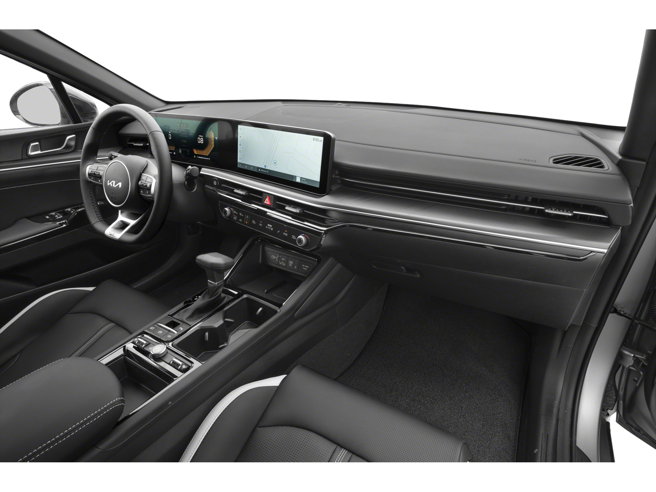 This 2025 Yacht Blue Kia K5 GT-Line AWD is well equipped and includes these features and benefits: 4-Wheel Disc Brakes, 6 Speakers, ABS brakes, Air Conditioning, Alloy wheels, AM/FM radio: SiriusXM, Auto High-beam Headlights, Automatic temperature control, Brake assist, Bumpers: body-color, Carpeted Floor Mats, Delay-off headlights, Driver door bin, Driver vanity mirror, Dual front impact airbags, Dual front side impact airbags, Electronic Stability Control, Emergency communication system: Kia Connect (includes 1 year free trial), Four wheel independent suspension, Front anti-roll bar, Front Bucket Seats, Front Center Armrest, Front dual zone A/C, Front fog lights, Front reading lights, Fully automatic headlights, Heated door mirrors, Heated Front Bucket Seats, Heated front seats, Heated steering wheel, Illuminated entry, Knee airbag, Leather Shift Knob, Leather steering wheel, Low tire pressure warning, Navigation System, Occupant sensing airbag, Outside temperature display, Overhead airbag, Overhead console, Panic alarm, Passenger door bin, Passenger vanity mirror, Power door mirrors, Power driver seat, Power steering, Power windows, Radio data system, Radio: AM/FM Audio System, Rear anti-roll bar, Rear seat center armrest, Rear side impact airbag, Rear window defroster, Remote keyless entry, Security system, Speed control, Speed-sensing steering, Split folding rear seat, Sport steering wheel, Steering wheel mounted audio controls, Tachometer, Telescoping steering wheel, Tilt steering wheel, Traction control, Trip computer, Turn signal indicator mirrors, Variably intermittent wipers, and Wheels: 18 x 7.5J Gloss Black Machined Finish Alloy.